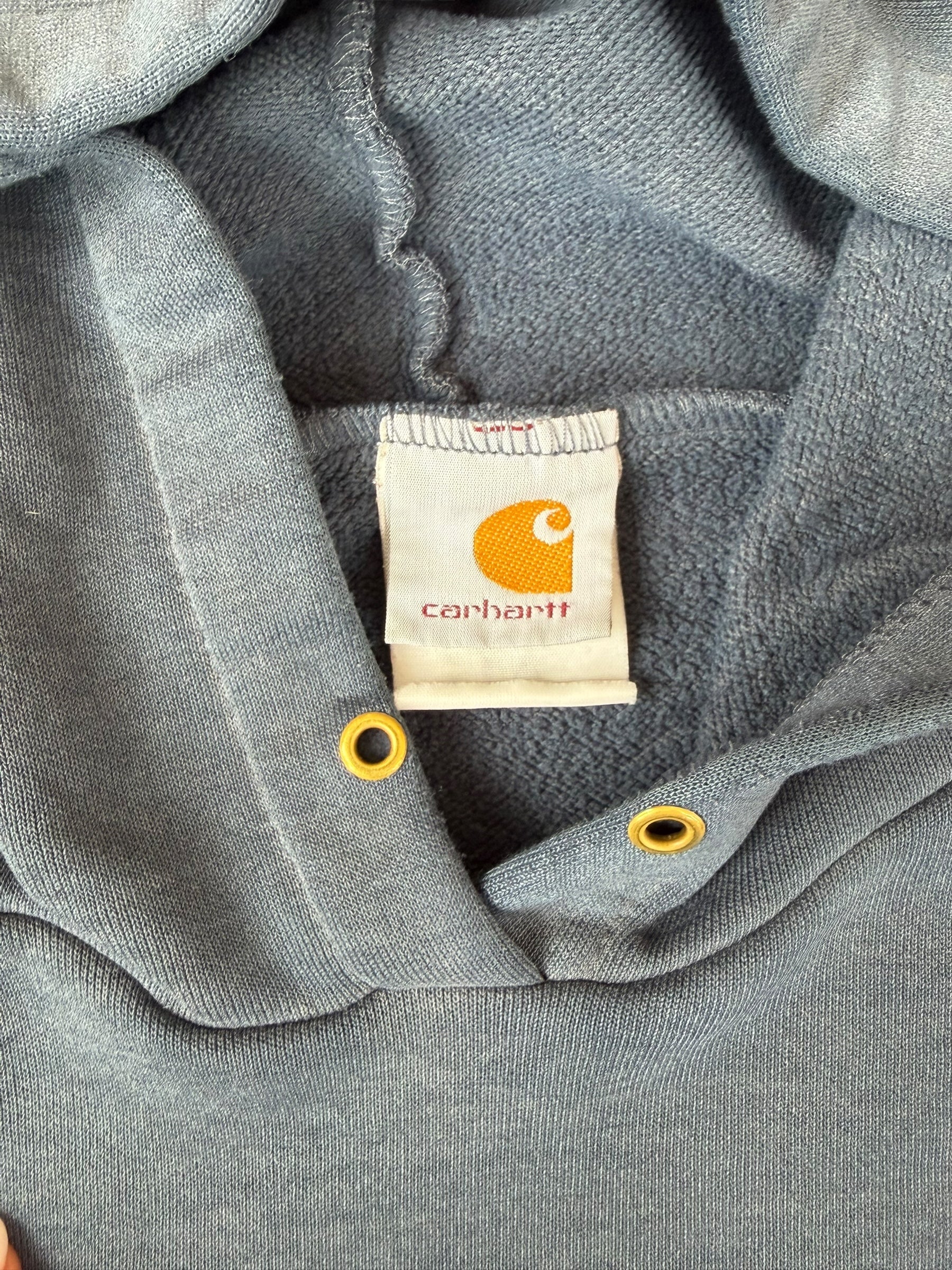VINTAGE CARHARTT SPELL OUT HOODIE BLUE (XL/XXL)